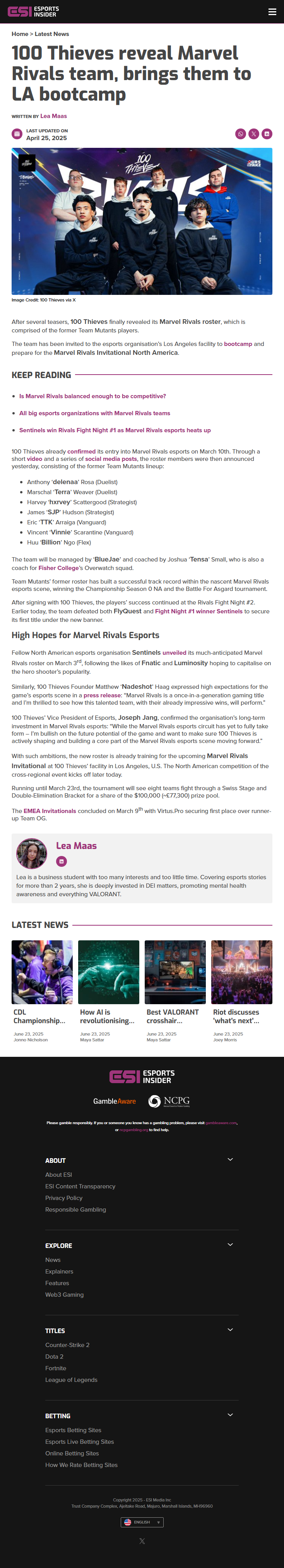 View source for News/100 Thieves Announces Marvel Rivals Roster