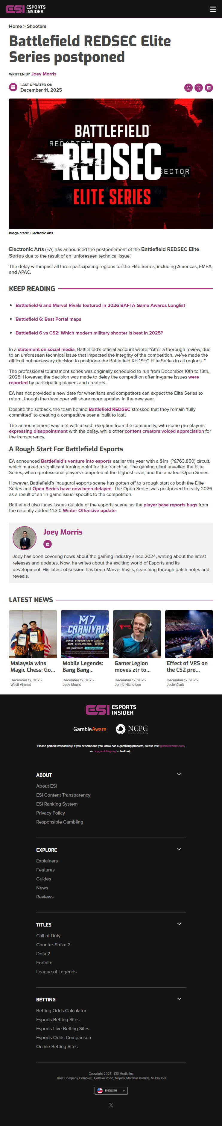 News/Battlefield REDSEC Elite Series Delayed: Revision history