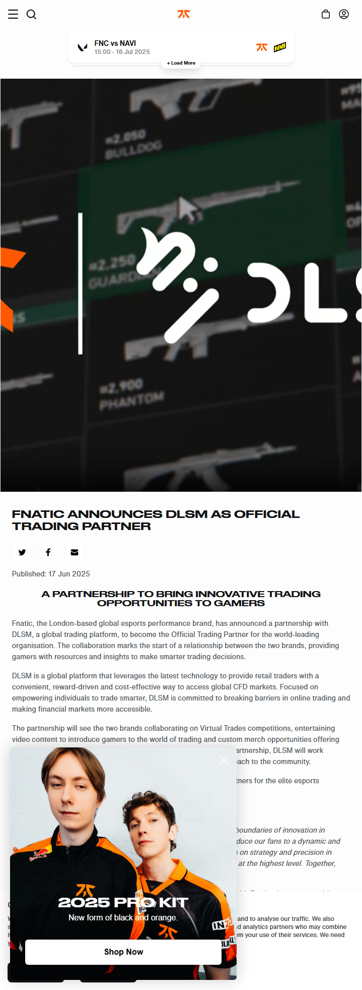 Gina Macauley, Marketing Director at Fnatic, highlighted the alignment between the two industries: “We’re thrilled to partner with DLSM, an industry leader pushing the boundaries of innovation in trading. Just as our community thrives on strategy and precision in esports, DLSM equips traders with the tools and insights to the highest level. Together, we’re redefining what’s possible both in-game and beyond.”