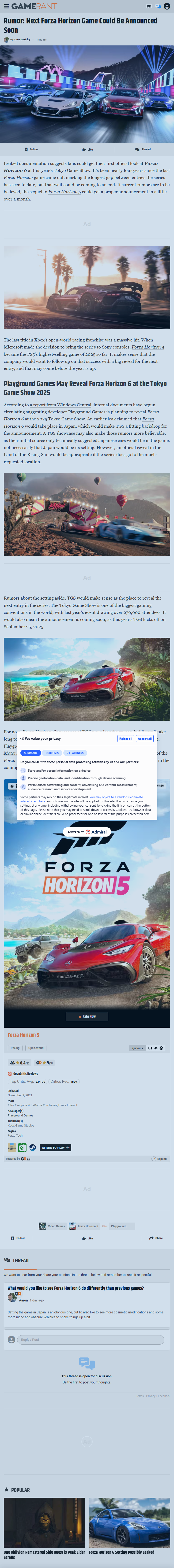 The news first surfaced via Windows Central, which reported that it has seen documents strongly suggesting that the racing game’s reveal will take place at the prestigious Japanese gaming conference. "We’ve seen official, widely circulated documents strongly suggesting that Forza Horizon 6 is actually planned to be announced during 2025’s Tokyo Game Show," said the report, which pointed to the event kicking off at the end of September.