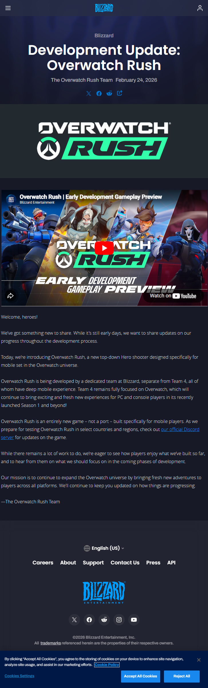 - Blizzard Entertainment has announced Overwatch Rush, a brand new top-down hero shooter built specifically for mobile devices, developed separately from the main Overwatch 2 team (Team 4) which will continue focusing on PC and console.